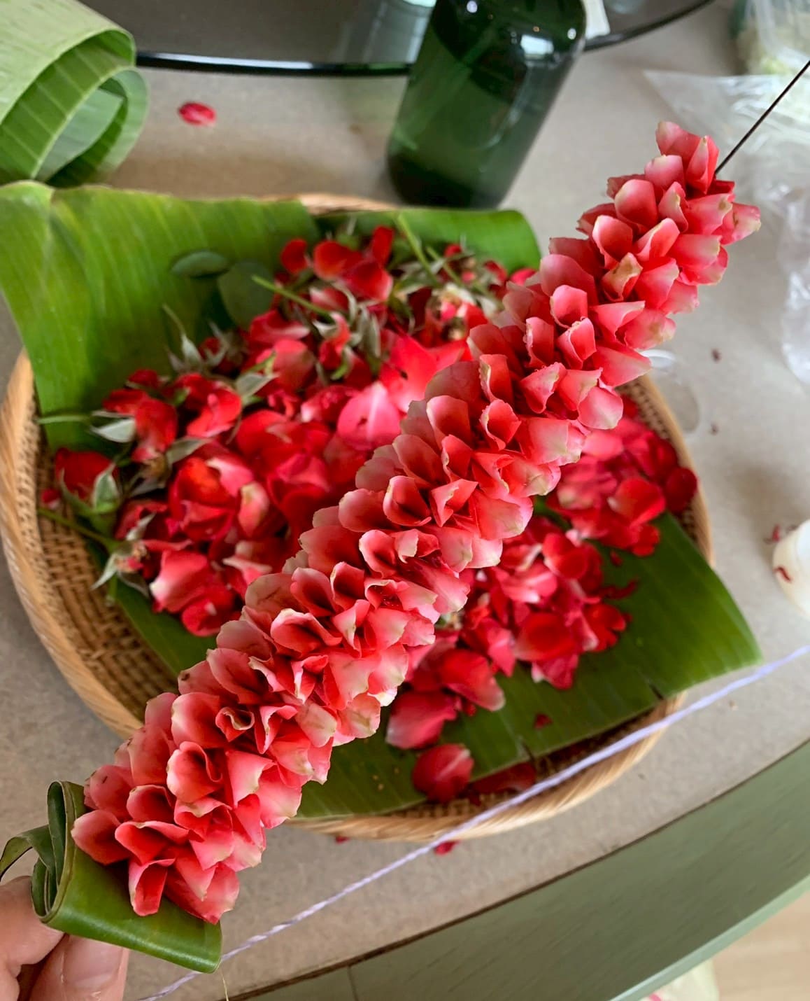 เรียนการพับกลีบกุหลาบ ฝึกฝนทักษะการส่งกลีบ และการสับหว่าง ร้อยตัวมาลัย มาลัยซีก