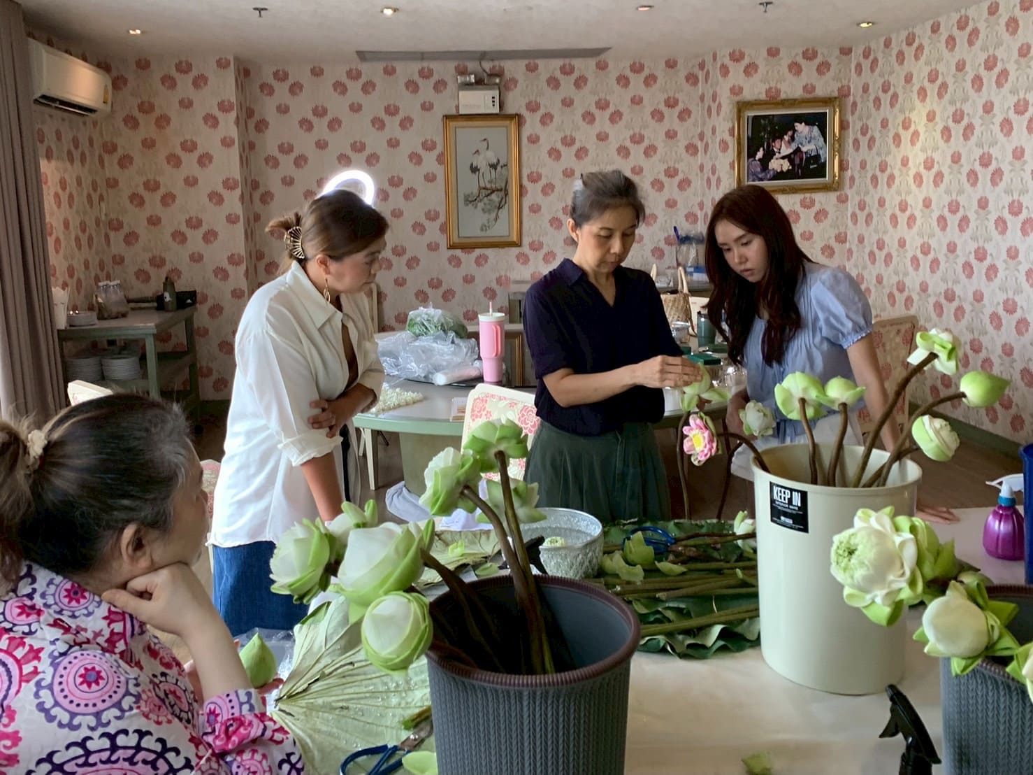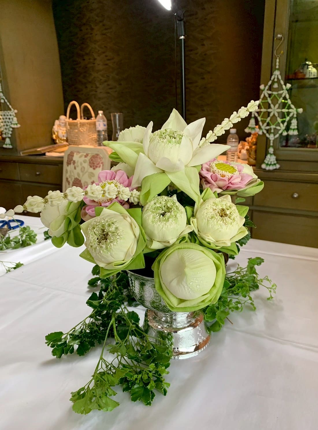 เรียนการพับกลีบดอกบัว 10+1 แบบ และชื่อเรียกตามในวังหลวงเรียนการจัดดอกไม้แบบสากลทรงสามเหลี่ยม