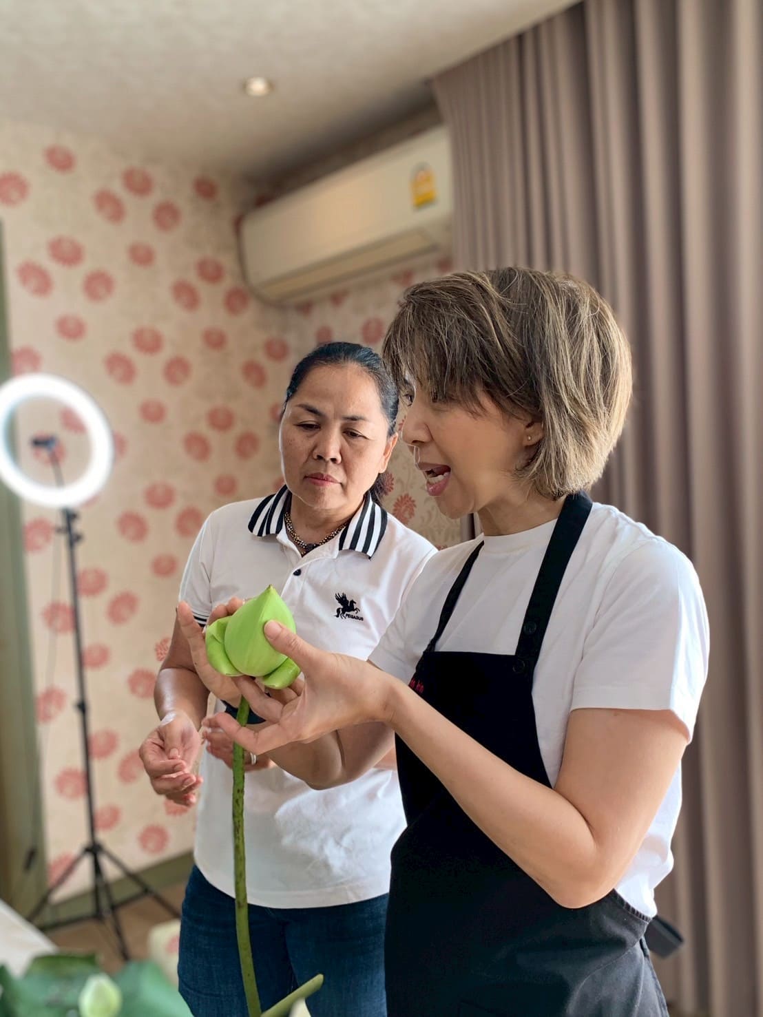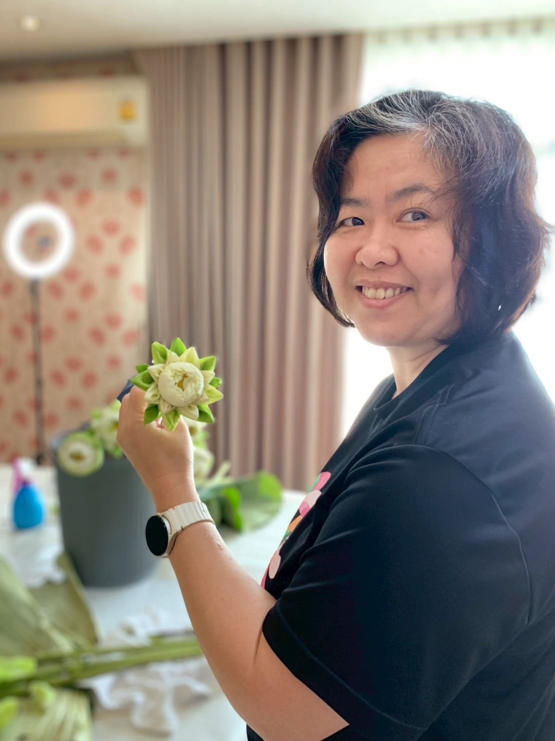 เรียนการพับกลีบดอกบัว 10+1 แบบ และชื่อเรียกตามในวังหลวงเรียนการจัดดอกไม้แบบสากลทรงสามเหลี่ยม