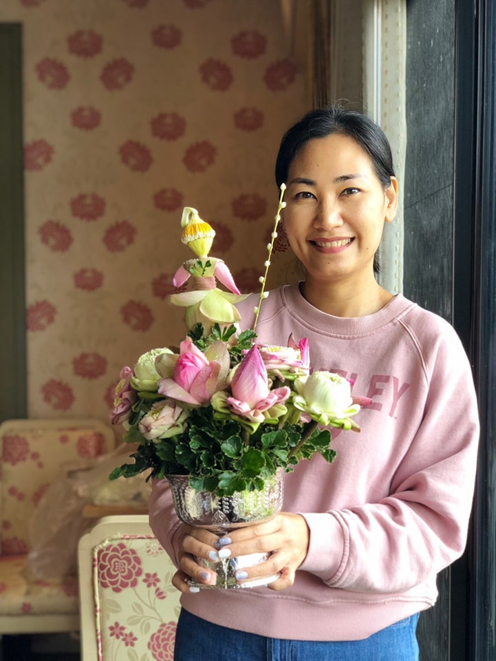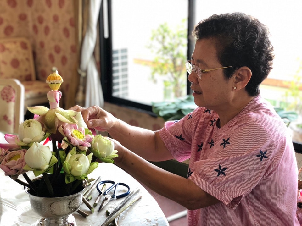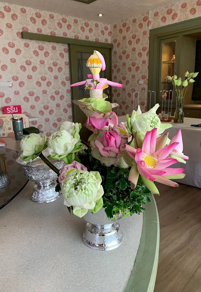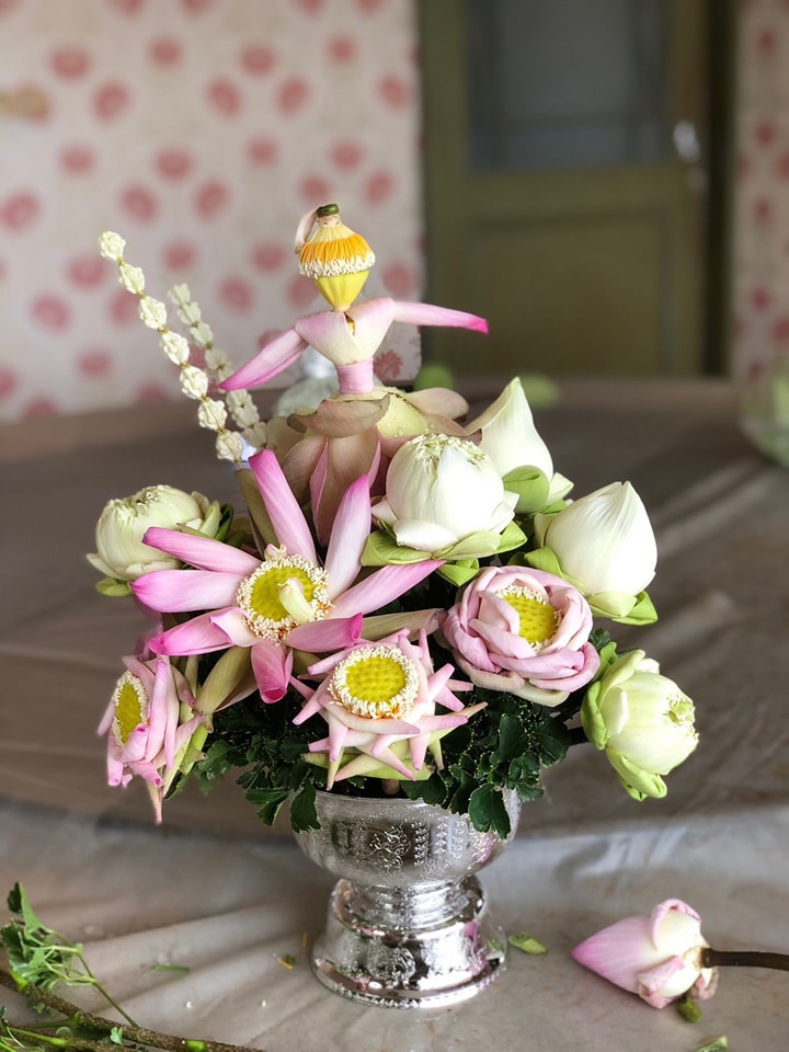 แล้วนำไปจัดพานดอกบัวทรงกลม และสร้างสรรค์ตุ๊กตาดอกบัว