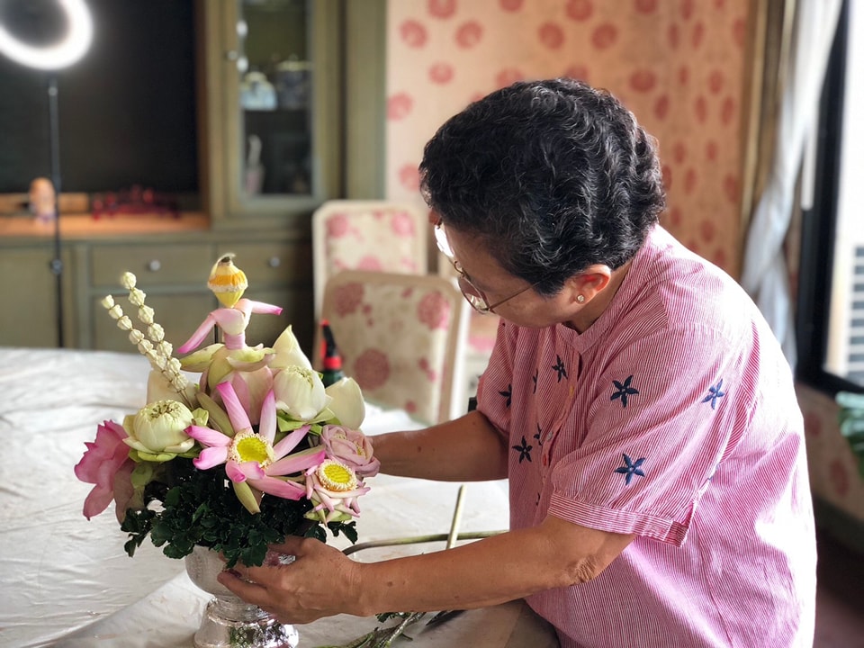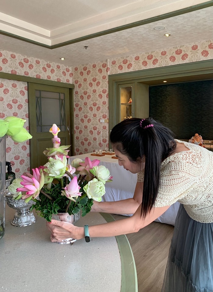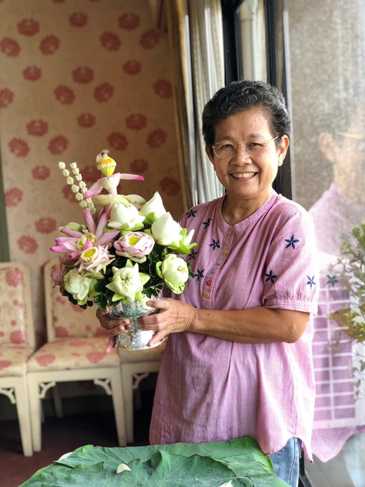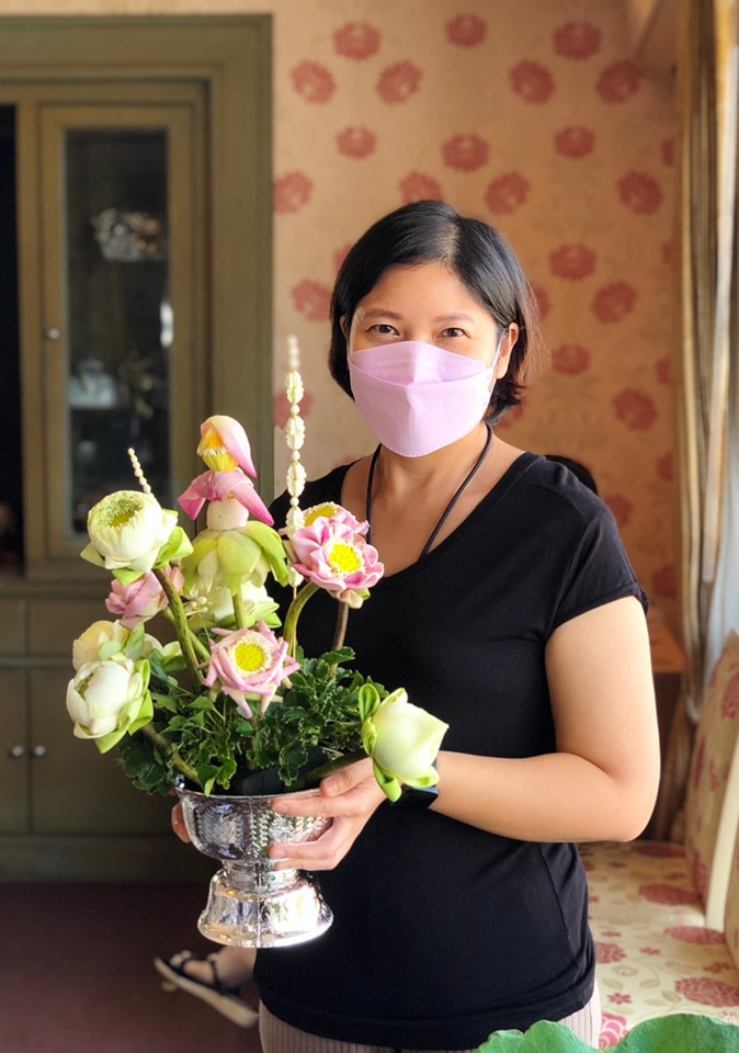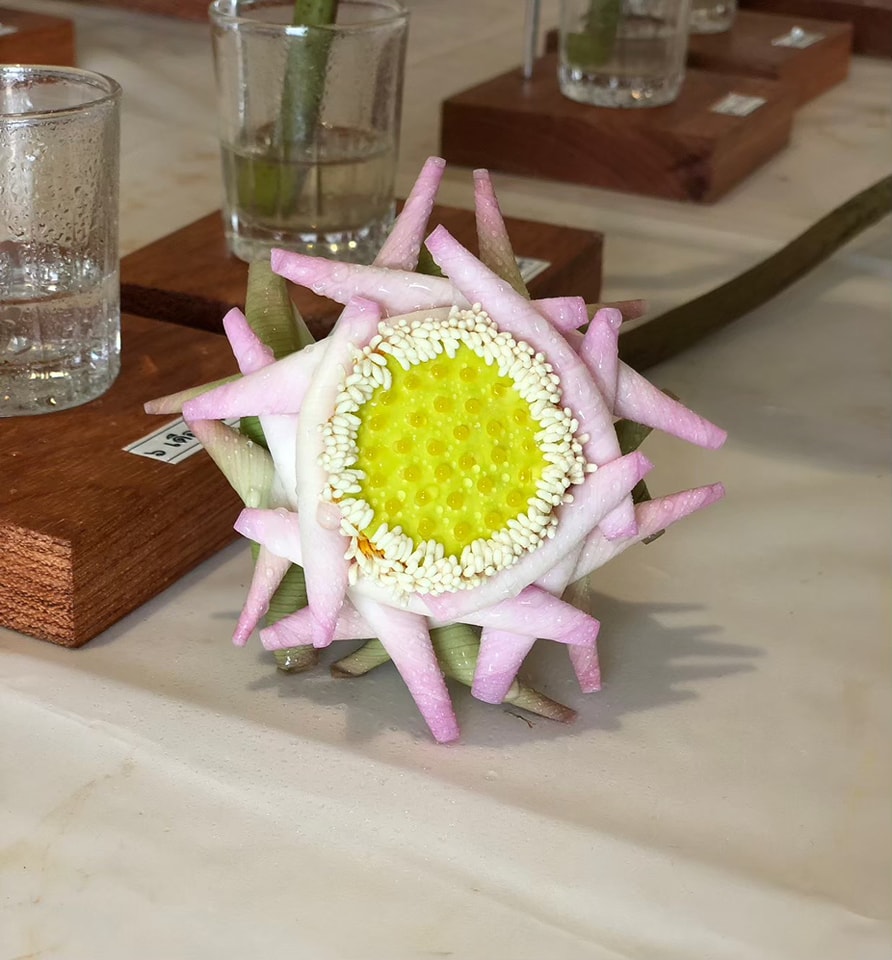 แล้วนำไปจัดพานดอกบัวทรงกลม และสร้างสรรค์ตุ๊กตาดอกบัว