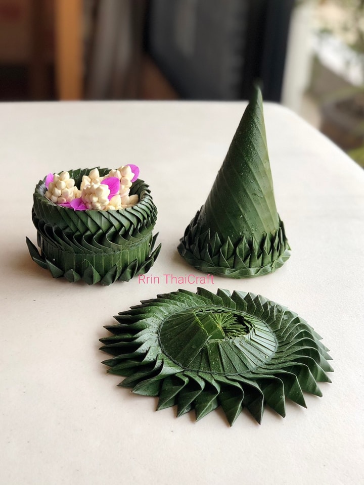 - กระทงลอย -จานใบตอง -ถาดใบตอง -พานขันหมาก -กรวยดอกไม้