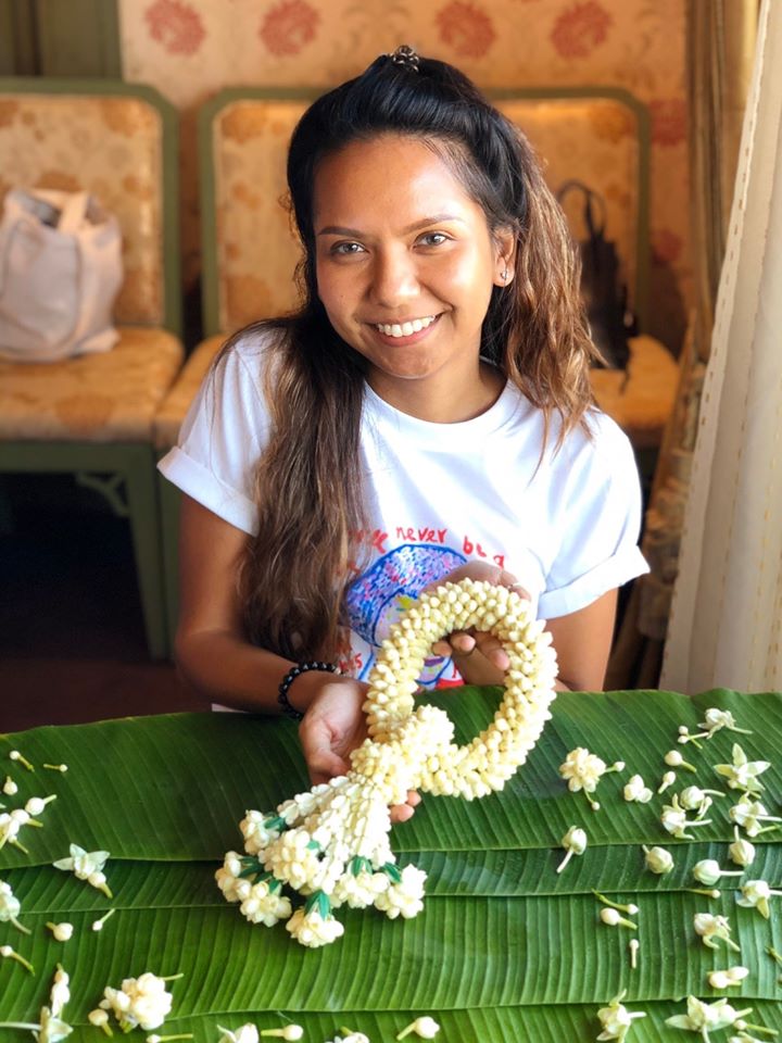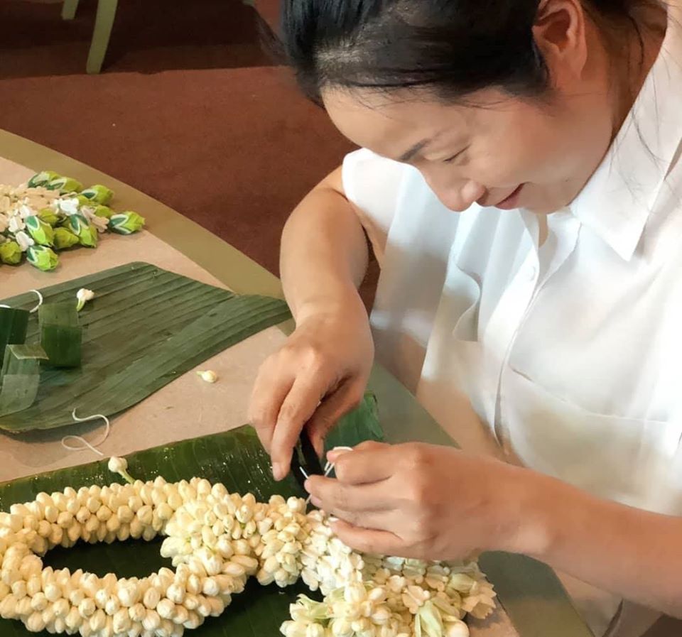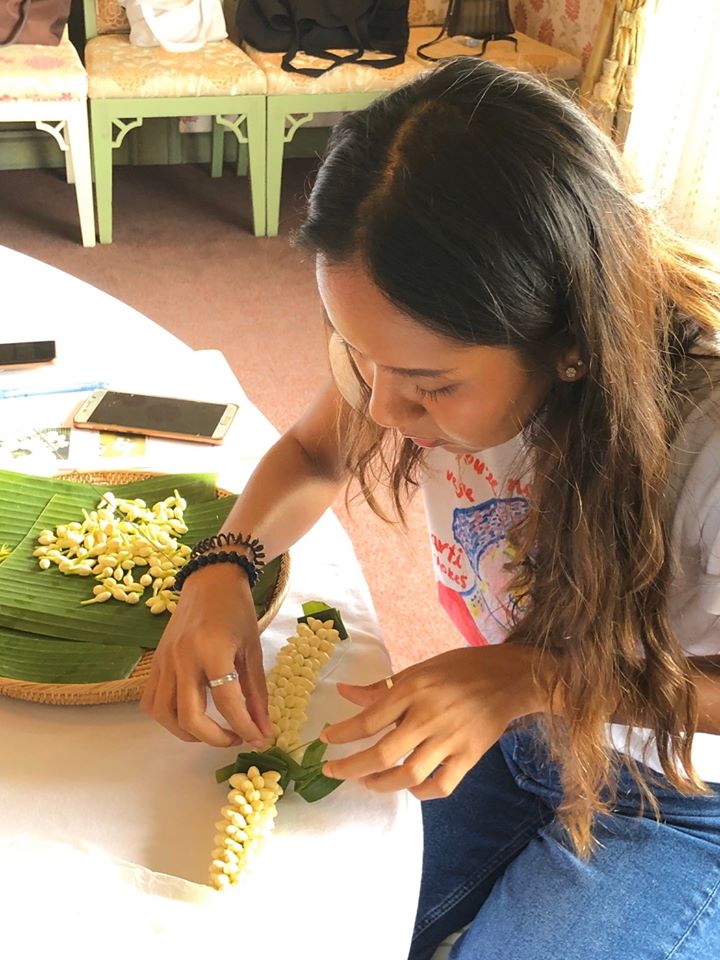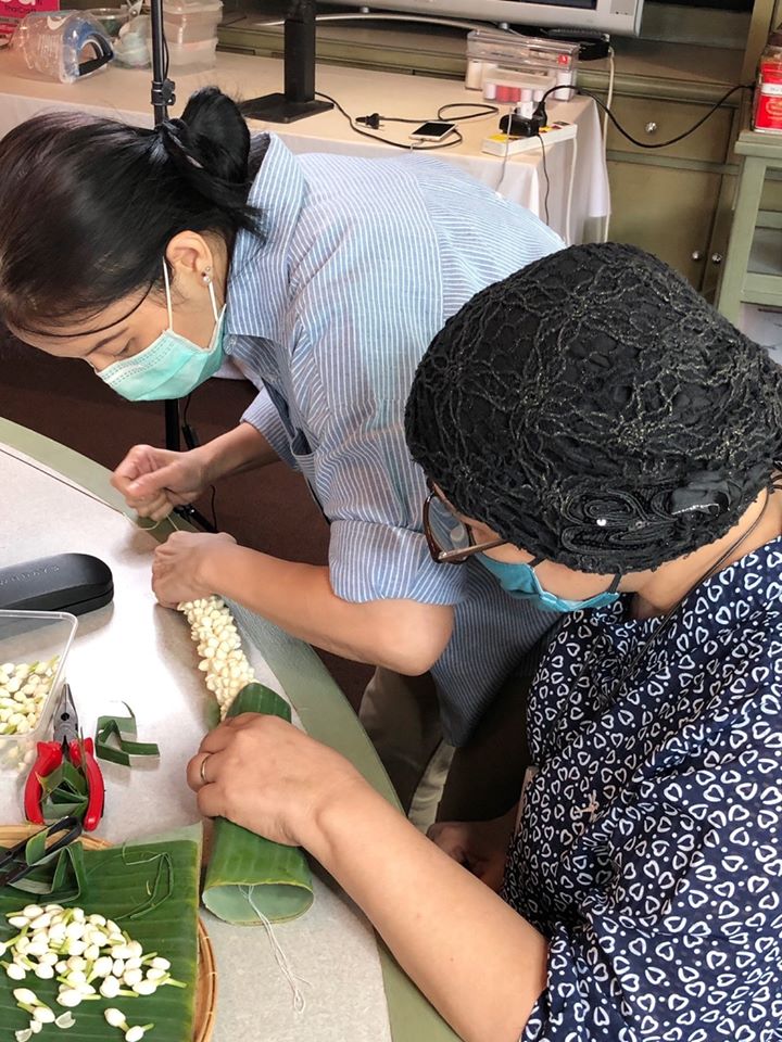 เรียนการร้อยมาลัยกลม ขนาดคล้องมือ รู้จักชนิดดอกมะลิที่นำมาร้อย ฝึกทักษะการส่งดอก การสับหว่าง การร้อยมาลัยซีกใหญ่ ซีกเล็กเรียนเทคนิกการมัดดอกตุ้มประดิษฐ์ และการร้อย การเข้าพวงอุบะ และการแต่งตัว มัดประกอบเป็นพวงมาลัยงาม
