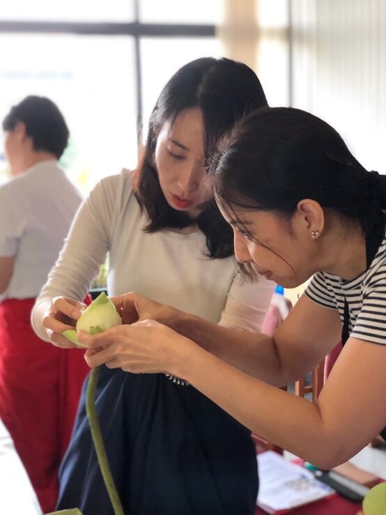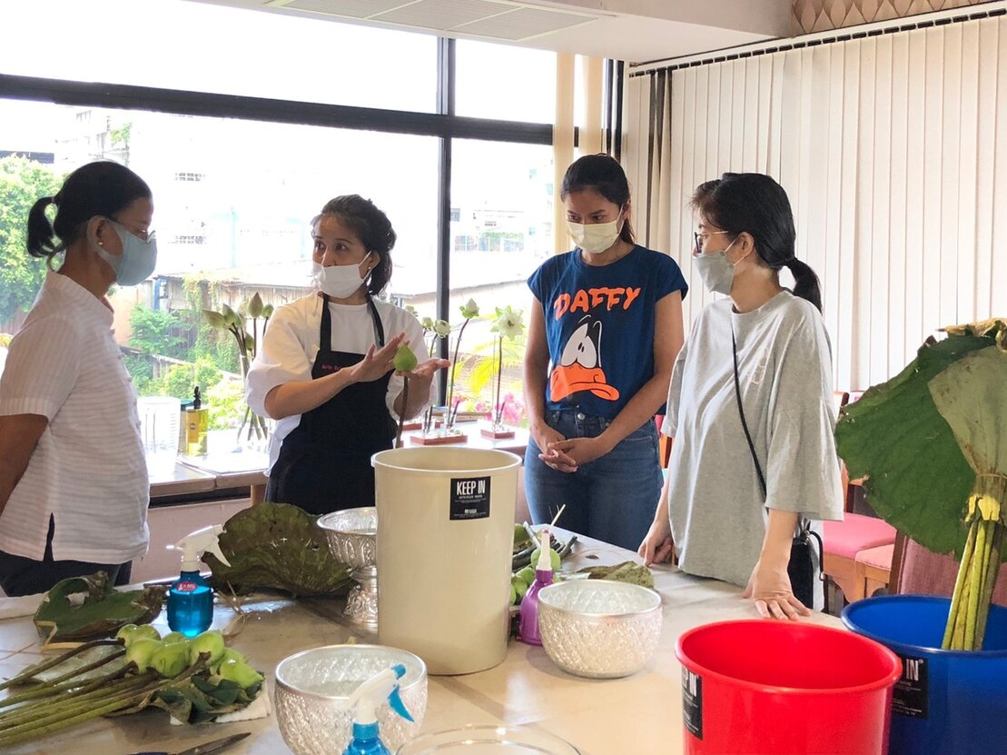 เรียนการพับกลีบดอกบัว 10+1 แบบ และชื่อเรียกตามในวังหลวงเรียนการจัดดอกไม้แบบสากลทรงสามเหลี่ยม