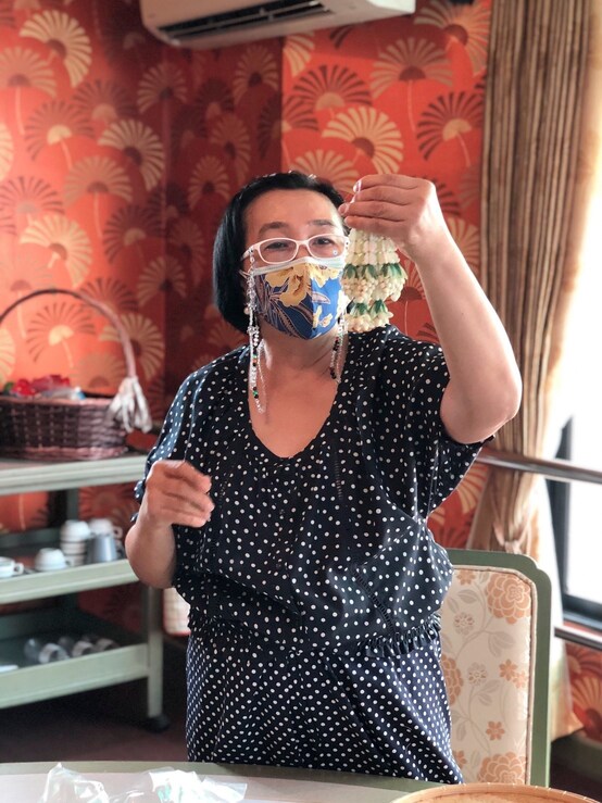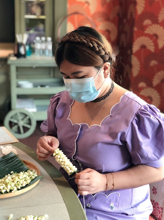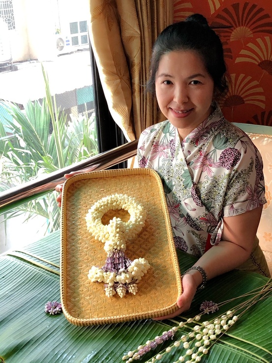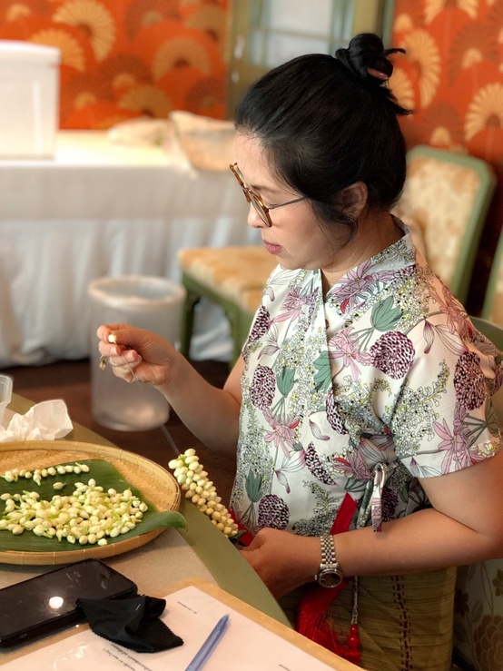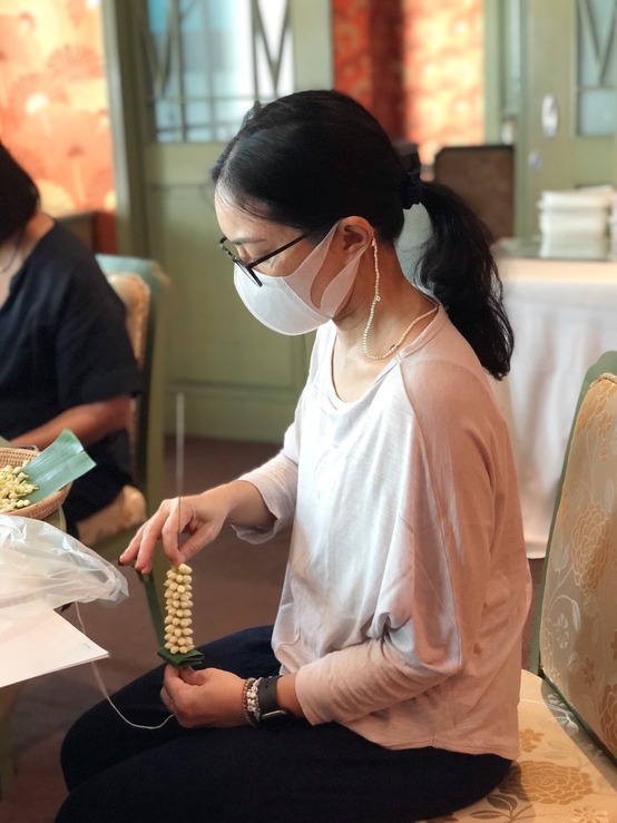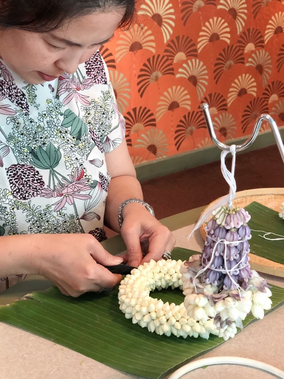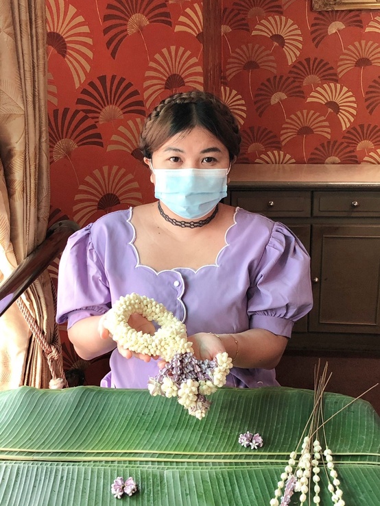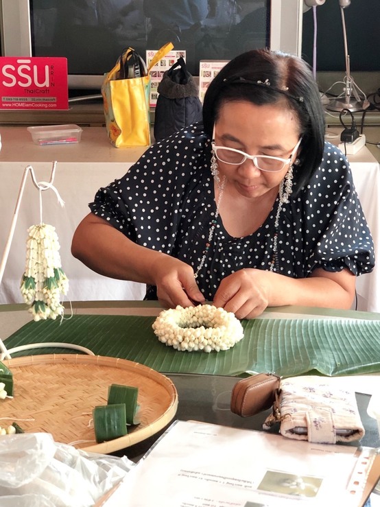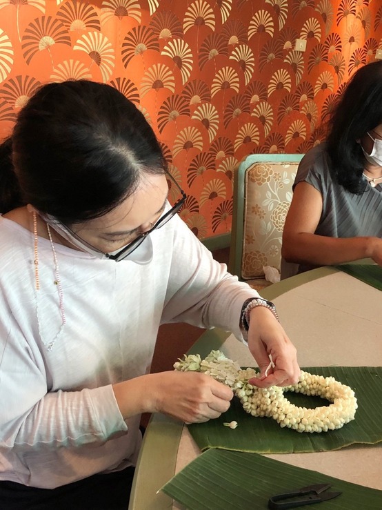 เรียนการร้อยมาลัยกลม ขนาดคล้องมือ รู้จักชนิดดอกมะลิที่นำมาร้อย ฝึกทักษะการส่งดอก การสับหว่าง การร้อยมาลัยซีกใหญ่ ซีกเล็กเรียนเทคนิกการมัดดอกตุ้มประดิษฐ์ และการร้อย การเข้าพวงอุบะ และการแต่งตัว มัดประกอบเป็นพวงมาลัยงาม